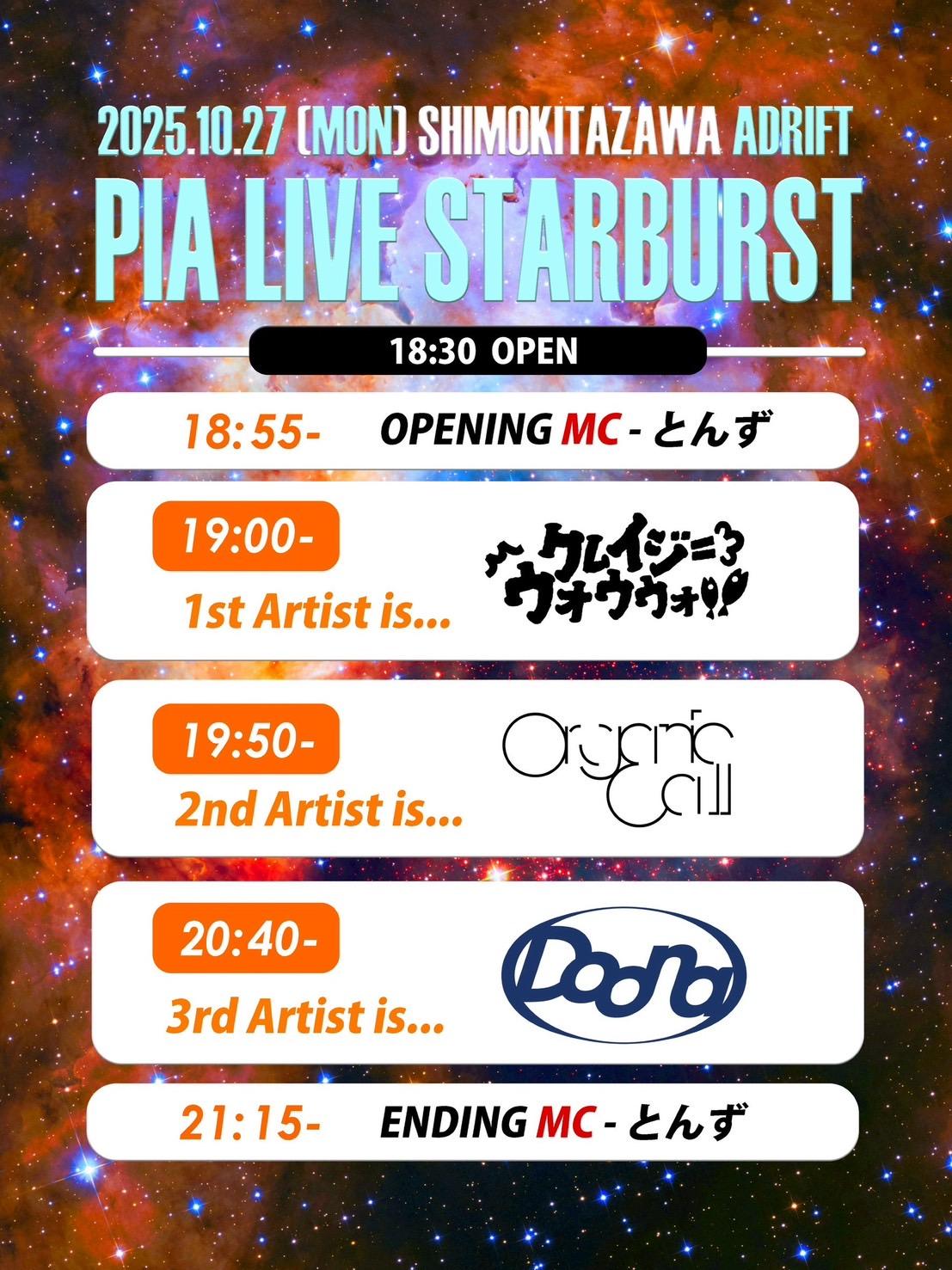 Doonaの出演は20:40~となります